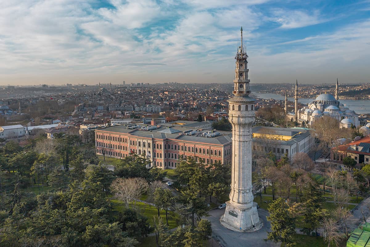 Beyazıt Tower is an 85-meter fire watchtower that is located at İstanbul University’s main campus. At a certain point in history, a specific lighting system was developed, and the tower used this system to share the weather forecast with Istanbulites.
