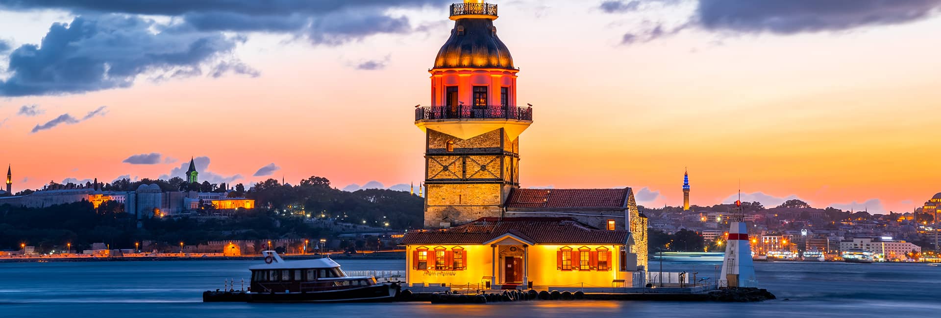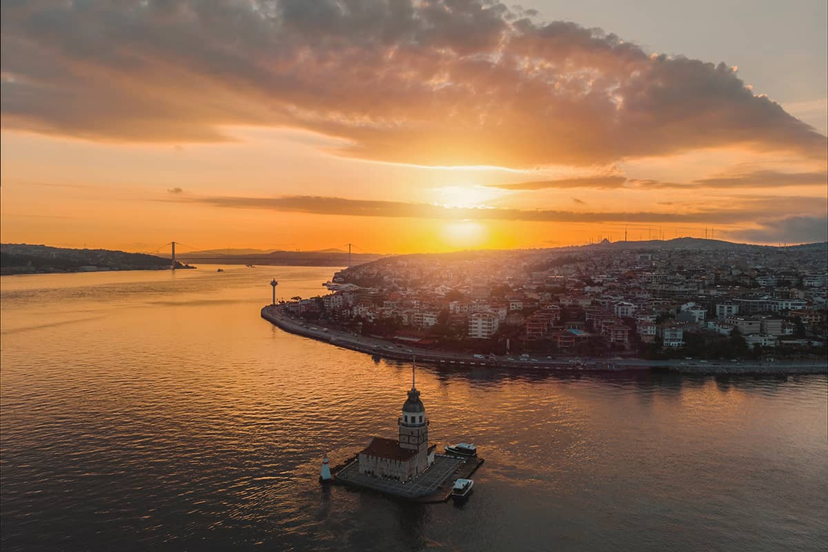 The Maiden’s Tower is located on a small islet near the Bosphorus Strait. It is not known exactly when the tower was built, but the architectural style points to the 300s BCE. Having served as a custom station for ships, the islet is thought to have been connected to the Asiatic shore through a defense wall whose underwater remains are still visible.