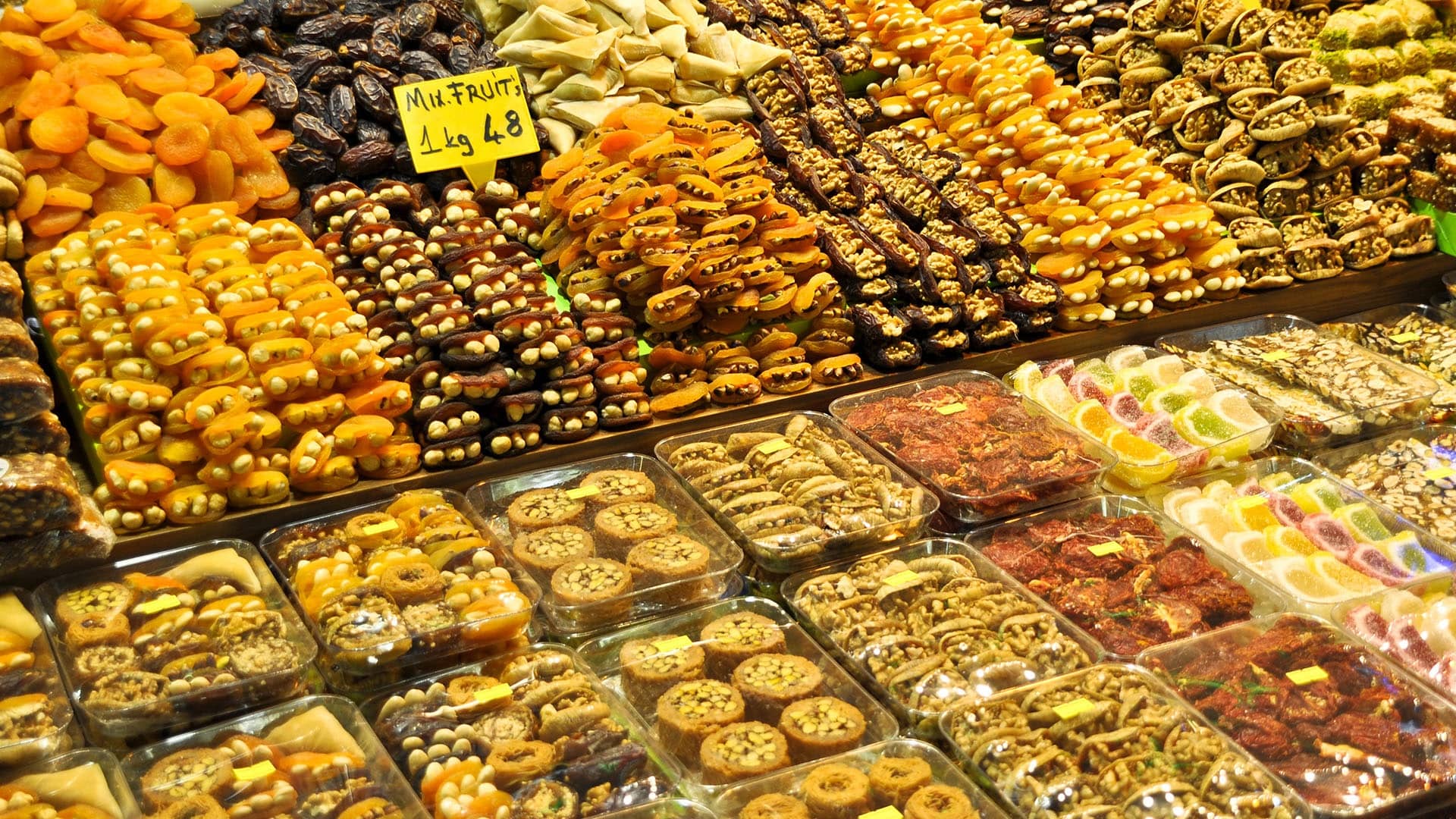 It’s not just the spices that draw the eye at this market, but also the abundance of dried fruits, nuts, and dairy products.