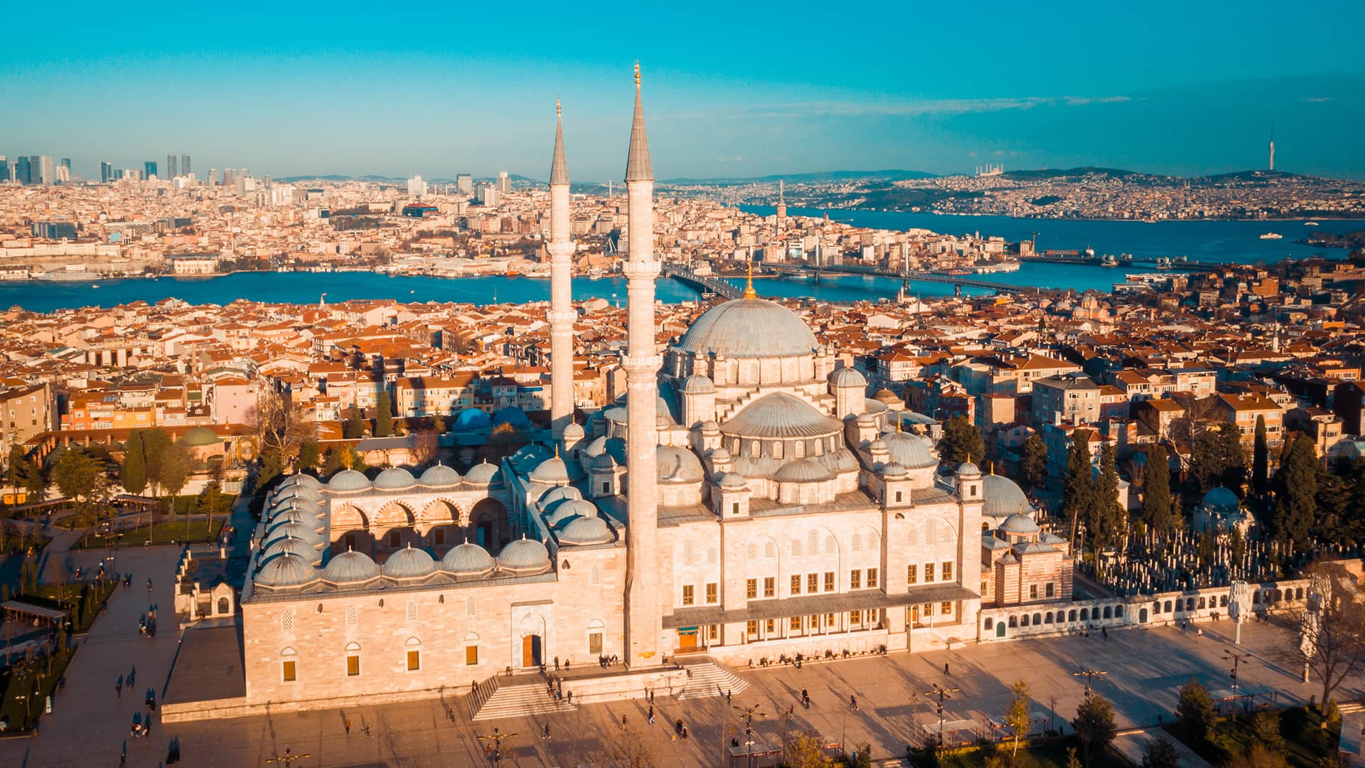The Magnificence of the Süleymaniye Mosque, stands out as it is perched on the Third Hill, it is an amazing sight as it pierces the İstanbul skyline and is one of the largest mosques in the city. Nestled in the incredible landscape of the Golden Horn, the mosque is surrounded by a sprawling courtyard, with the stunning interplay of ash-coloured domes and minarets only adding to its religious grandeur. The interior of the mosque is equally magnificent: plush carpets, magnificent chandeliers, luminous stained glass windows, and an ornately tiled mihrab dazzles visitors with their ceaseless architectural perfection.