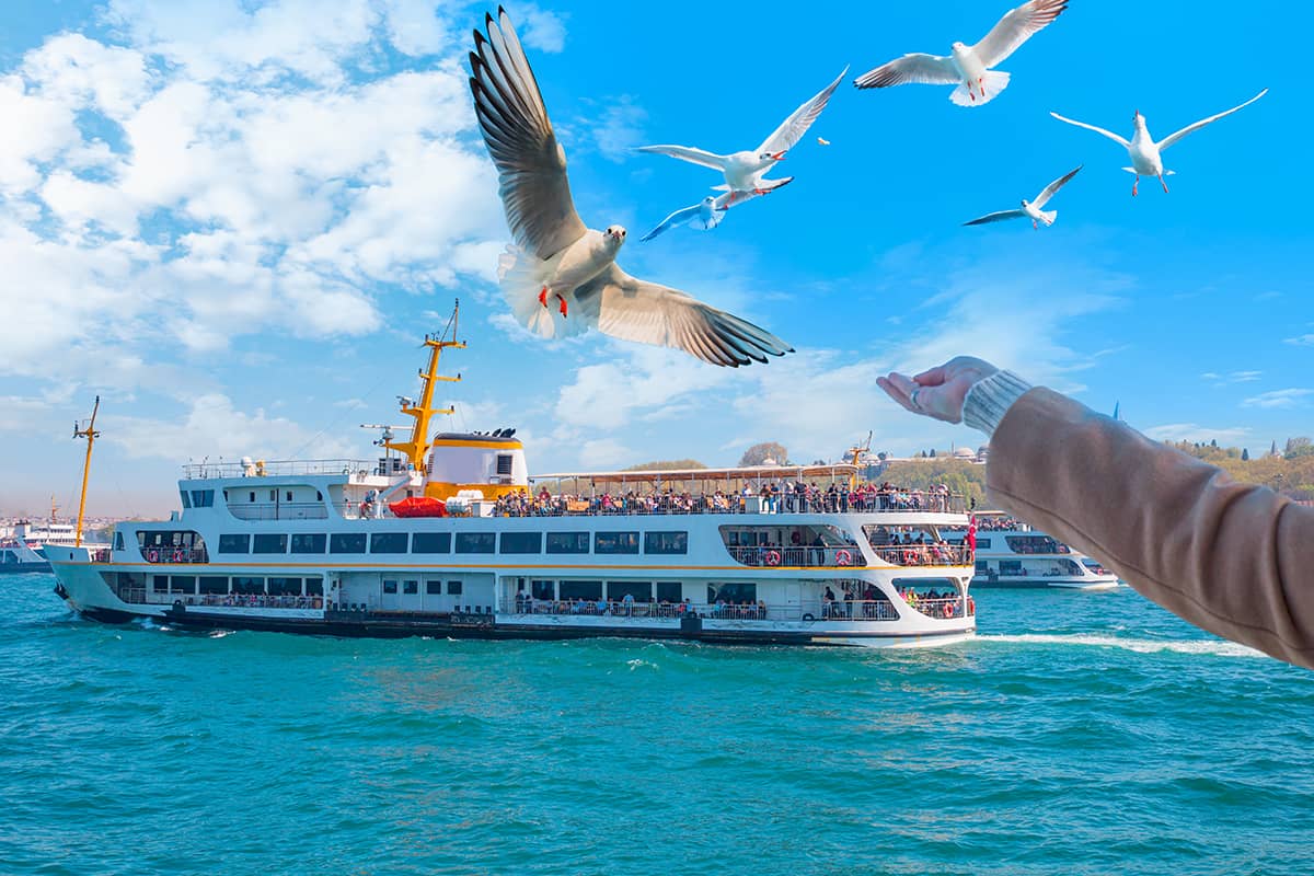 Let's tell you a secret! Before getting on the ferry, definitely buy a bagel because the first thing to do in İstanbul is undoubtedly eating simit and feeding the seagulls!